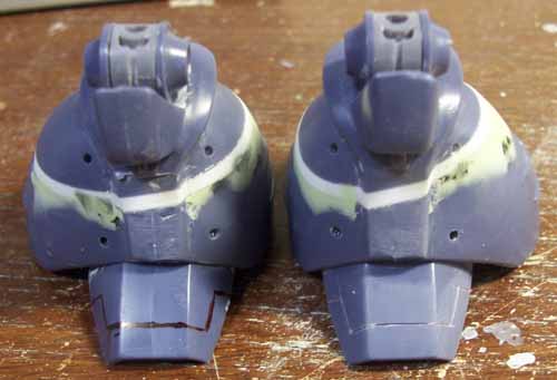 これで合わせ目は消せたのですが、まだ細かい所(ヒケやパーツのめくれ)などを修正していないので、もうちょっと頑張ってペーパーをかけてやります。