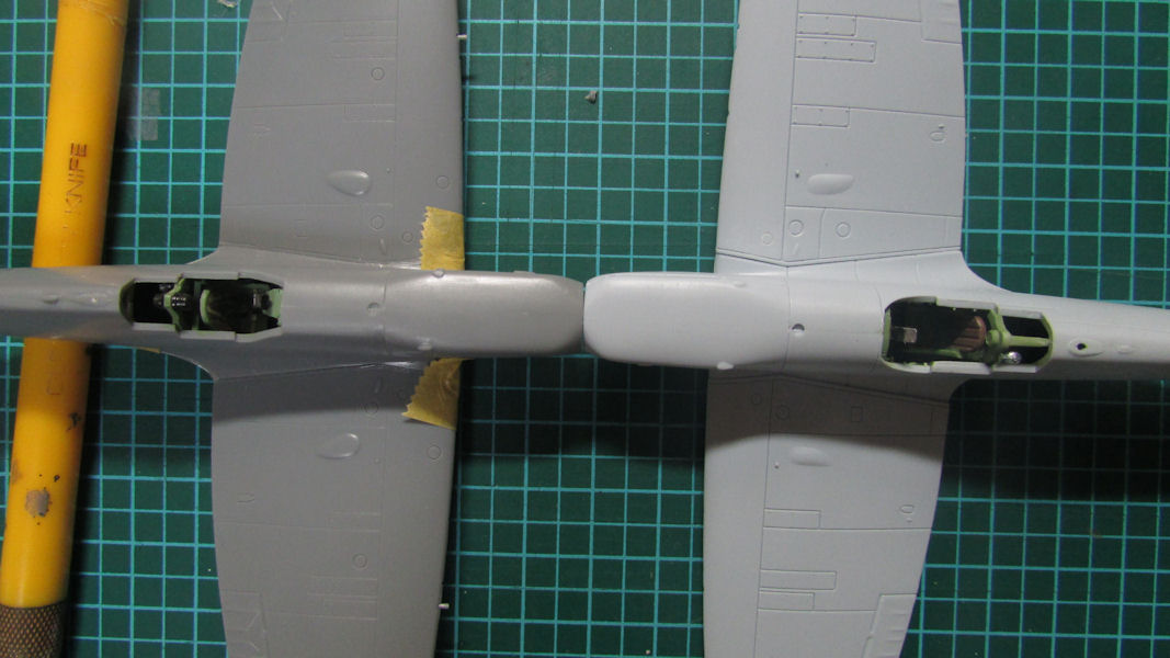 以前作ったハセガワ版のMK9と比較してみると、かなり機首に違いがありますね。